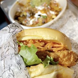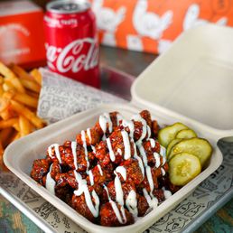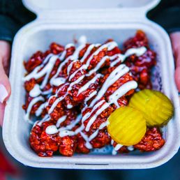 Saw this place on TikTok and was worried it would be overhyped, but it's such a great place for fried chicken!! They have such a wide variety of interesting flavours and combinations, so I had a hard time deciding what to get. I ended up getting the honey garlic chicken burger combo and sweet chili chick n pop. The burger was one of the best fried chicken sandwiches I've ever had - the bun was light and fluffy, and the chicken was perfectly seasoned with the sweet honey sauce. The fries were pretty solid, but didn't stand out. I really enjoyed the truffle aioli sauce that I chose to come with it! I also loved the sweet chili chick n pop. I got the sauces on the side, but both were super good on their own or combined together. They're perfect little bites of crispy chicken and sauce! I'm super interested in trying the other flavours of fried chicken that they have. Food came delivered super quick - they did forget my drink in my combo, but I assume they might've just not had it.