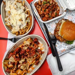 My group and I stopped by after visiting immersive Game box. The place is small and the cashier was super friendly and answered my questions. The security guard also was super helpful with recommending things off the menu. I got the Ludlow fries, honey something chicken pop and a chicken sandwich. I thought the Ludlow fries were goood. The chicken was nice and had a good texture not too crunchy and the flavor had a nice kick to it. Good spot to visit if you been drinking and wanna munch.